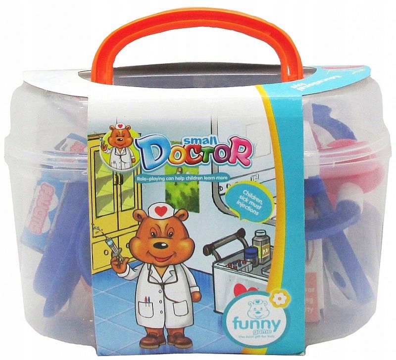- W zestawie znajduje się kuferek do przechowywania + 13 akcesoriów małego lekarza