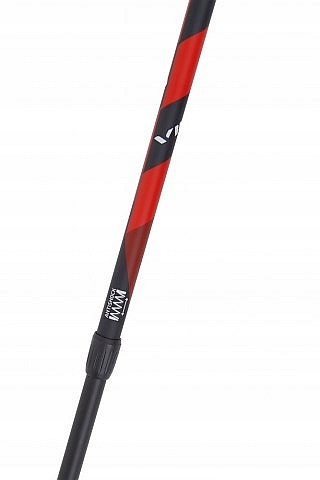 - Model posiada możliwość regulacji długości w zakresie 66-135 cm. Blokada żądanej długości następuje dzięki mechanizmowi rozporowemu na skręcanie – wystarczy dokręcić sekcję do oporu, aby zablokować daną długość kija.